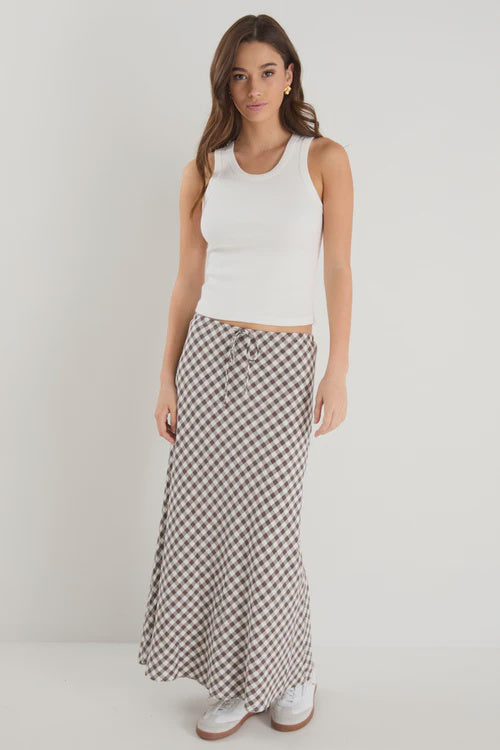 Summit Gingham Cotton Bias Maxi Skirt - Chocolate Among the Brave