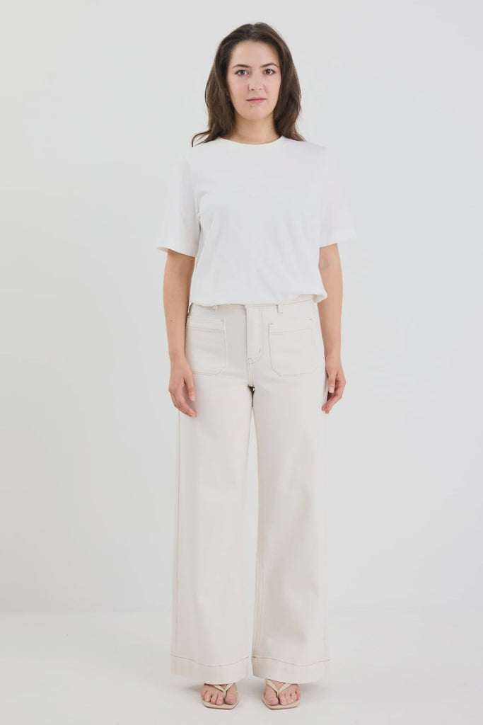 Zoey Petite High Rise Wide Leg Jean - Ecru Among the Brave