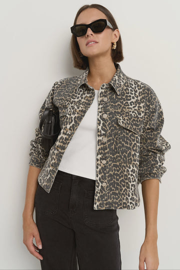 Echo Leopard Print Ptach Pocket Denim Jacket- Leopard