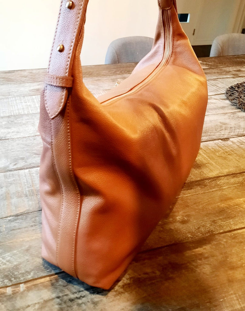 LARGE roomy shoulder bag in quality pebbled genuine leather.