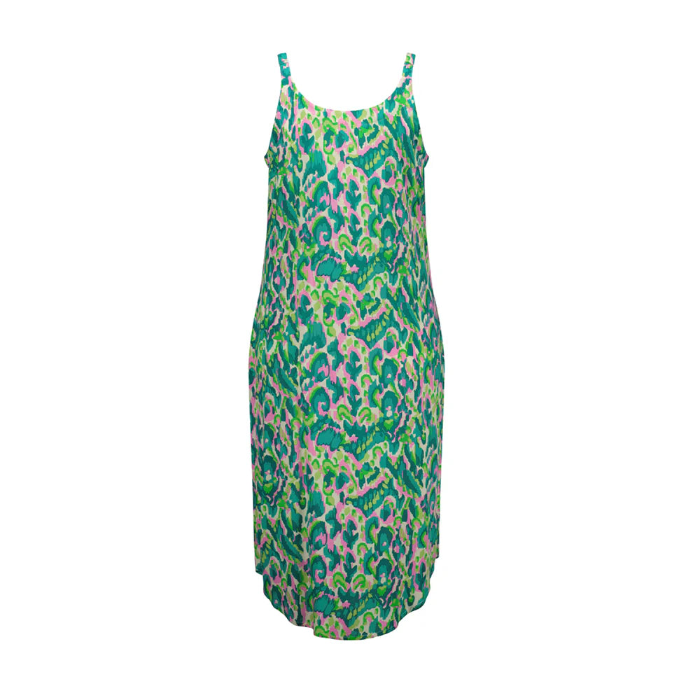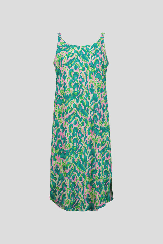 Embrace summer's vibrancy in our Maddie dress crafted from pure viscose fabric. Adorned with a vibrant print that captures the essence of sunny days, it radiates joy. Adjustable straps ensure a perfect fit, while slits on the sides add a hint of allure and movement. With a round hem falling elegantly to knee length, this dress is a versatile addition to your summer wardrobe.