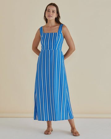 The Tegan Midi Dress offers a flattering fitted silhouette with a square neckline and shirred back panel for comfort. Crafted from a soft viscose blend, it features side splits and a midi length for elevated style. A classic, effortless dress designed for transeasonal elegance.