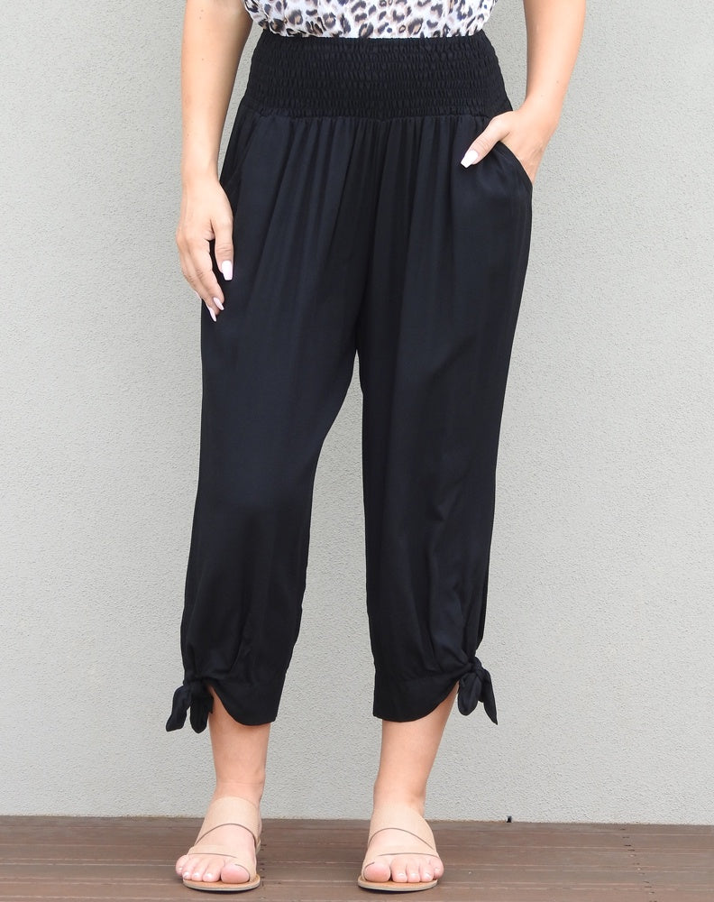 These simple yet stylish black 3/4 length pants are perfect for summer. A comfortable and easy wearing style that can be worn from day to night to a variety of occasions. Change the look from casual flats and a basic tee to wedges and a stylish top!
