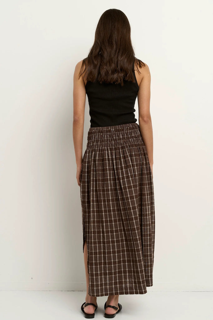 Cheerful Shirred Maxi Skirt - Chocolate Gingham