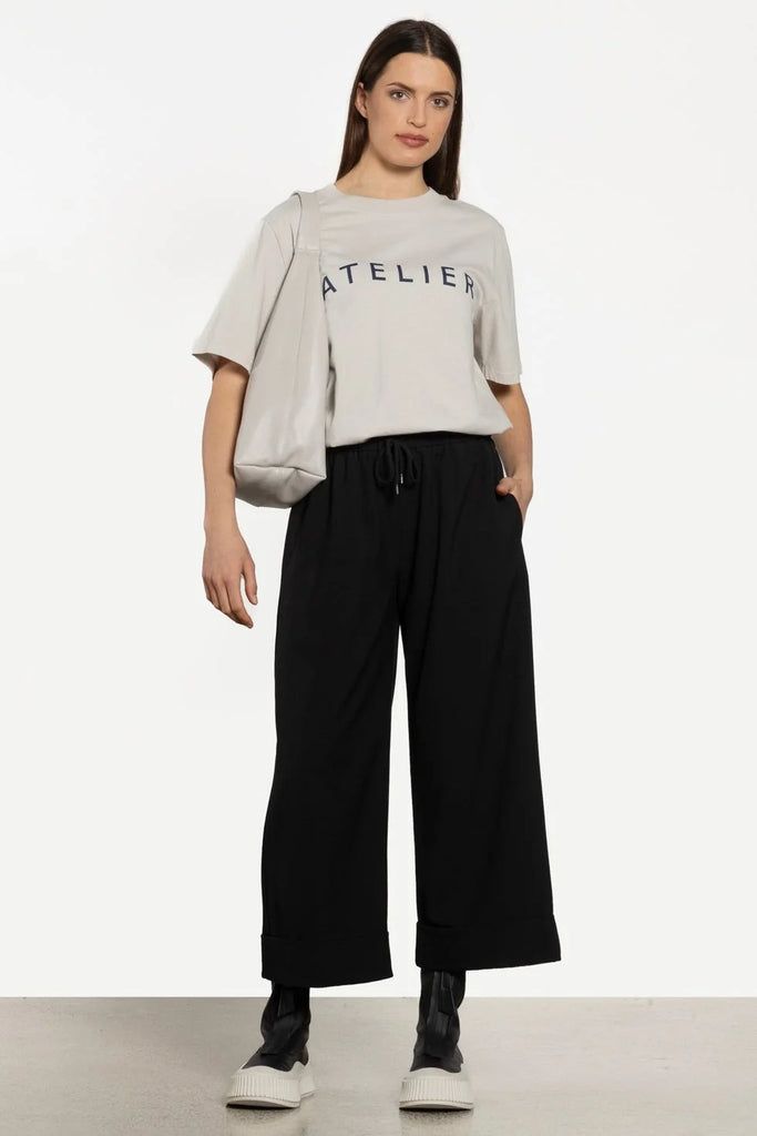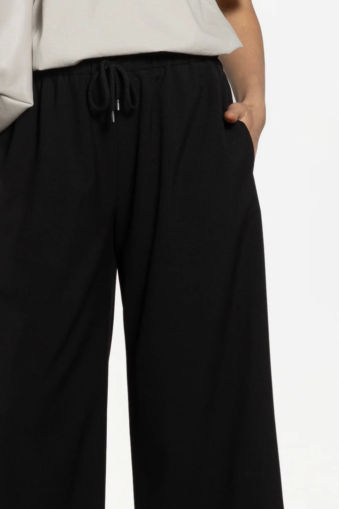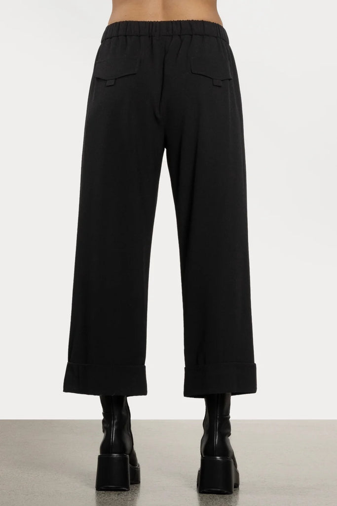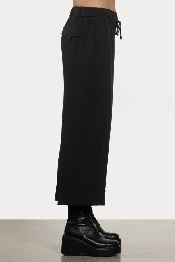 The Logic Pant offers a fresh take on relaxed styling with its cropped wide-leg silhouette and cuffed hemline. Featuring a soft covered elasticated waistband with an adjustable drawstring, it combines tailored design with ultimate comfort. Functional side pockets enhance practicality, making these pants perfect for casual or dressed-up occasions. Crafted in a lightweight, structured fabric, the Logic Pant transitions seamlessly from workdays to weekends. Pair them with a fitted tank for a relaxed vibe or elevate the look with heels and a tailored top.