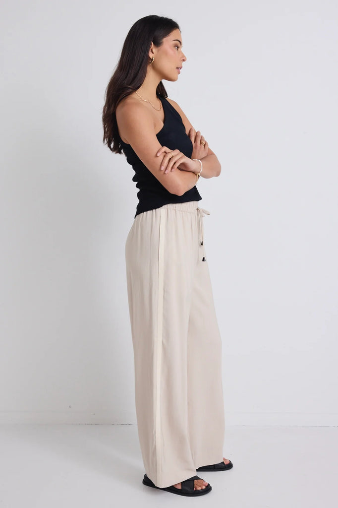 Townie Stripe Side Tape Wide Leg Pant -Sand
