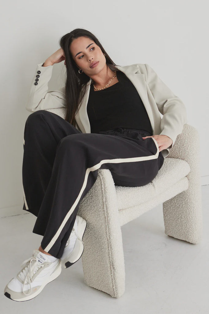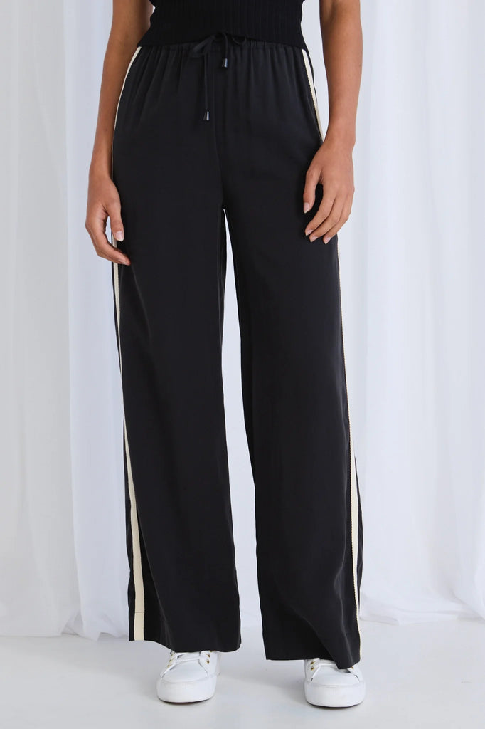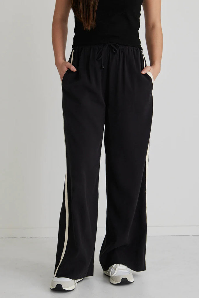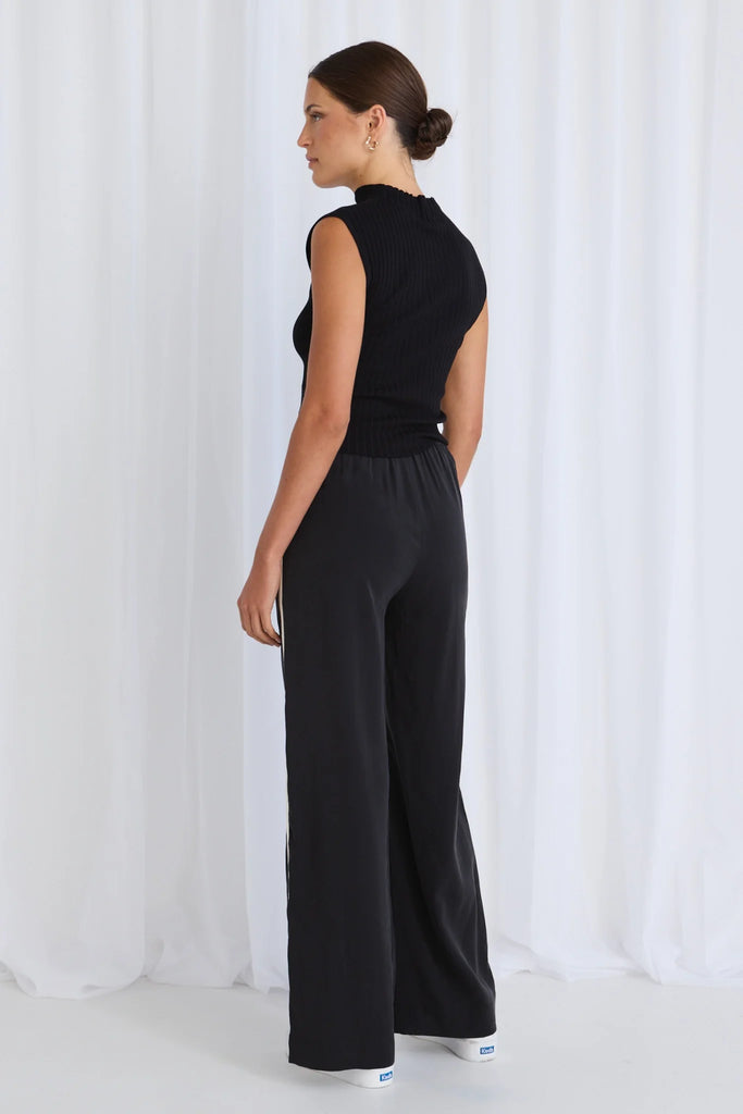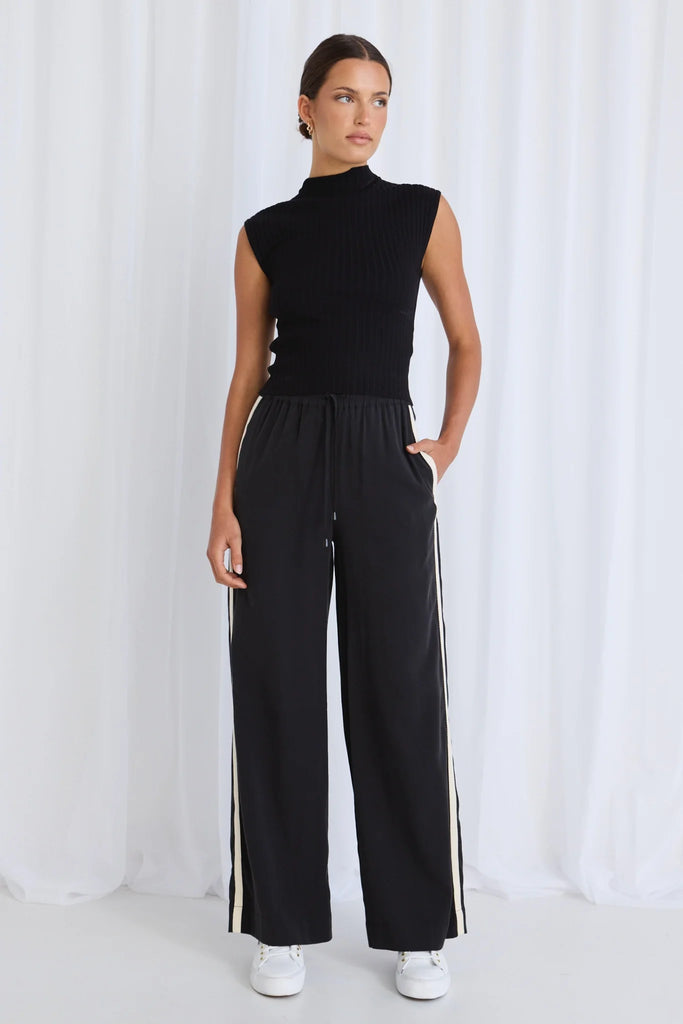 Townie Stripe Side Tape Wide Leg Pant -Matt Black