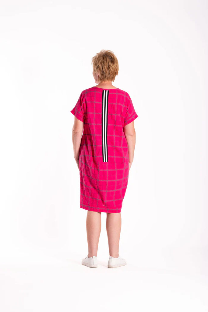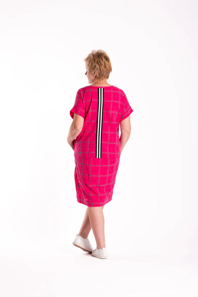 Our little shift dress, with simple vee neckline and 3/4 length puff sleeves. This elevated classic is the perfect addition to a summer wardrobe.