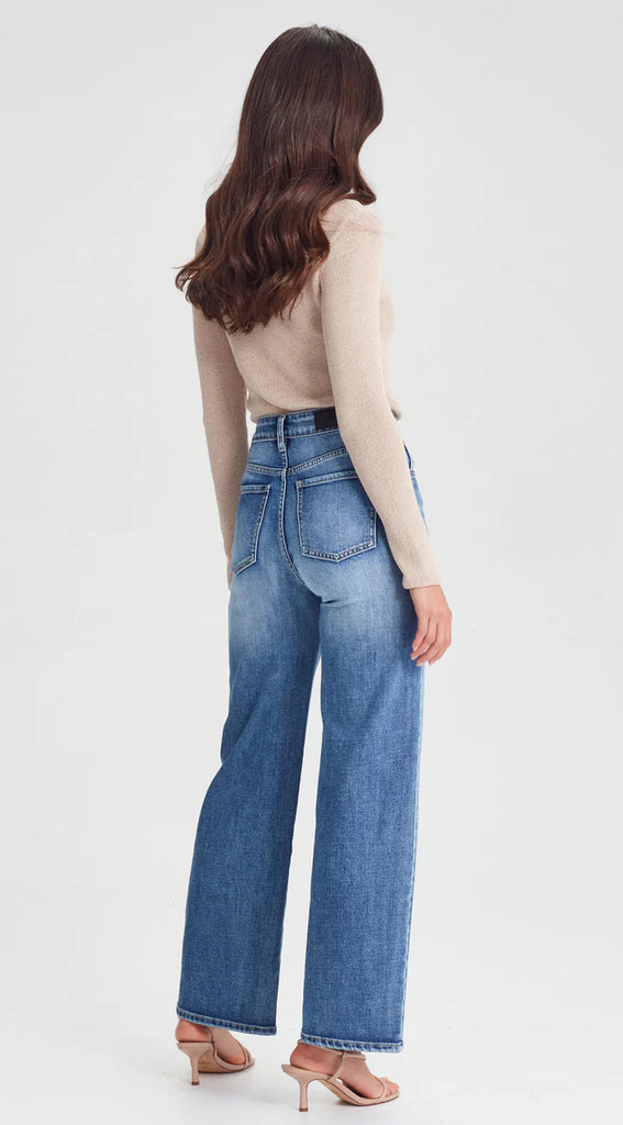 Wendy fits slimmer to the waist & body with a relaxed and wider leg. In a medium stretch, premium denim and perfect denim blue colour.