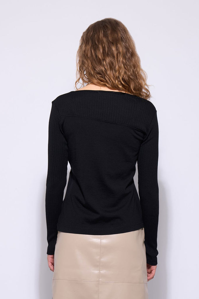 The Divine Angles Top by Neris, is a relaxed-fit top made from 100% Merino wool, featuring rib panel details and full ribbed sleeves. A simple crew-neck design, this is a versatile and stylish addition to your wardrobe. Designed in Christchurch, New Zealand.