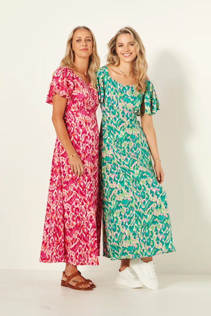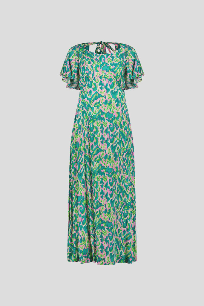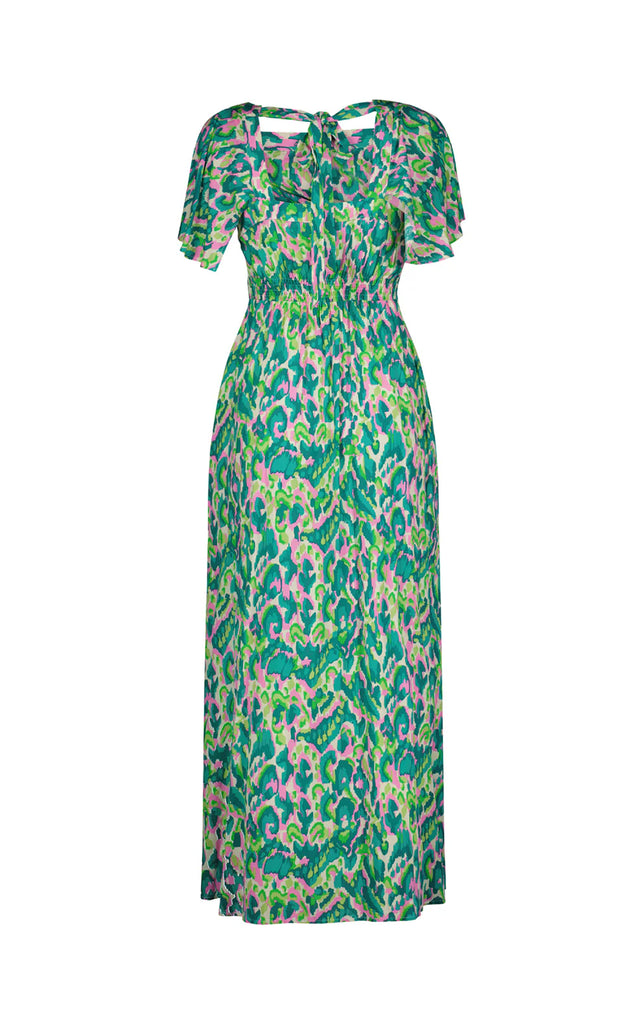 Celebrate summer in style with our Sylvia dress, tailored in a flattering A-line silhouette. Featuring a vibrant print, it ties elegantly at the back. The high curved waistline accentuates your figure, while flared sleeves add a touch of romance. Falling effortlessly to a midi length, this dress promises versatility for every summer occasion.