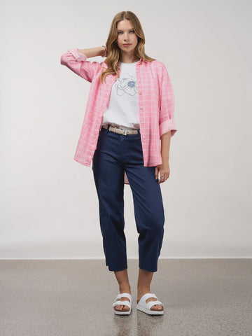 The Wavelength Shirt from Madly Sweetly is an easy fitting button-up shirt in a soft printed ramie. Featuring side placket button detailing for styling options and a flattering shirt-tail hem that finishes slightly longer at the back.