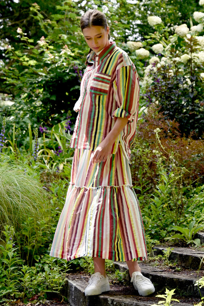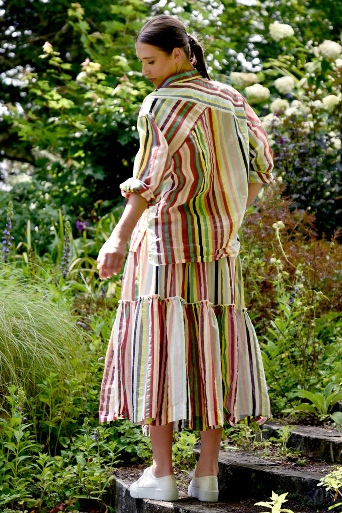 A kaleidoscope of springtime colours. Crafted in the bold ‘Rainbow’s End’ linen, cotton blend, the ‘Right This Way’ skirt is sure to brighten any day. Featuring full, gathered tiers for whimsical volume and a fixed front waist with an elasticated back for a comfortable fit for everyday wear. Pair with the ‘Shirt Vision’ shirt for a fiercely, vibrant co-ordinated look.