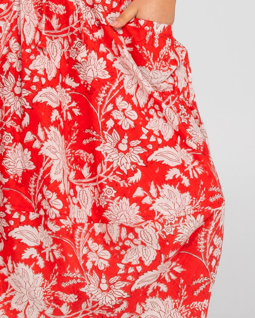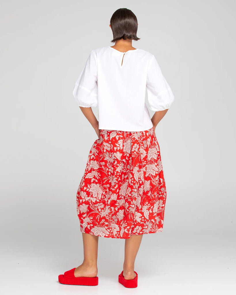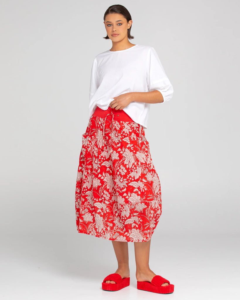 The Boom Shankar Guru Skirt is a 100% cotton, 3/4 length cotton beauty with a super comfortable stretch cotton waistband, draw-string tie, and flattering shape. This skirt is fully lined and can be worn from season to season. With two front and two back pockets, the Guru Skirt is a versatile and easy-to-wear option for all shapes and sizes.