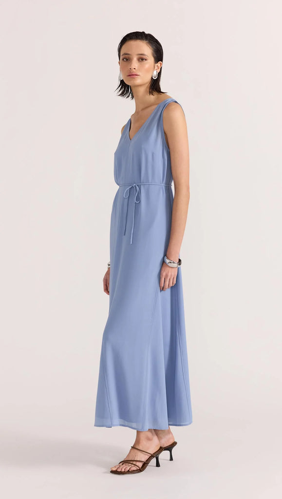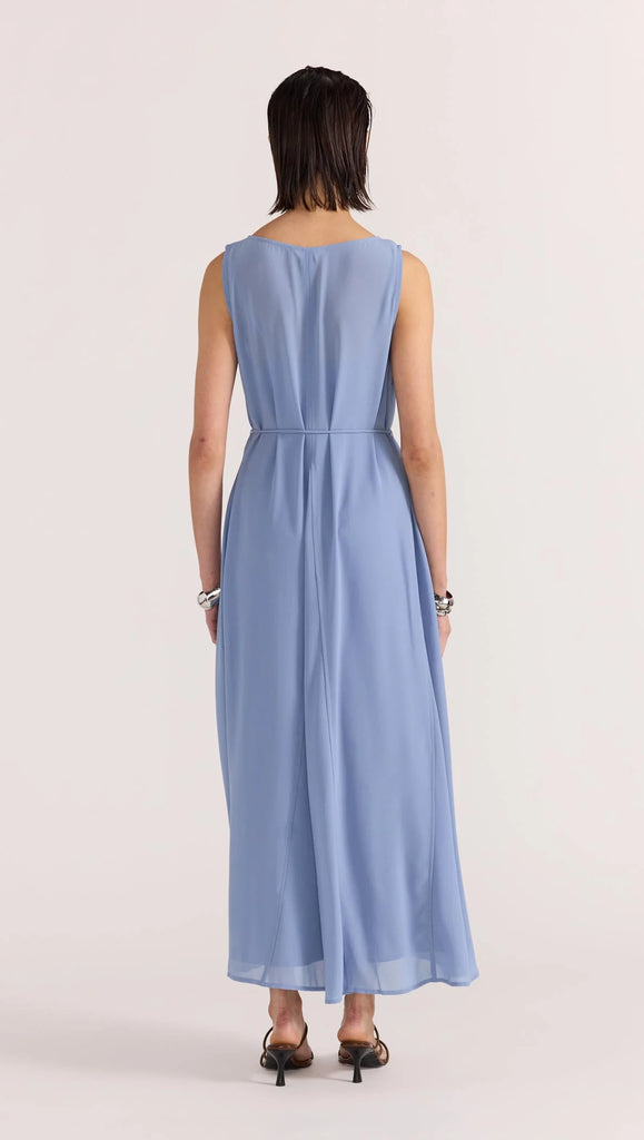 The Myla Godet Midi Dress in a soft blue hue is the chameleon in your wardrobe - wear it with sandals for a casual weekend looks, pair with low heels for the office, or accessories for a special occasion (we think it's perfect for weddings). This Midi dress is crafted with a chiffon fabrication with a tie waist that skims and flatters the body beautifully and finished in a jacaranda blue wash.