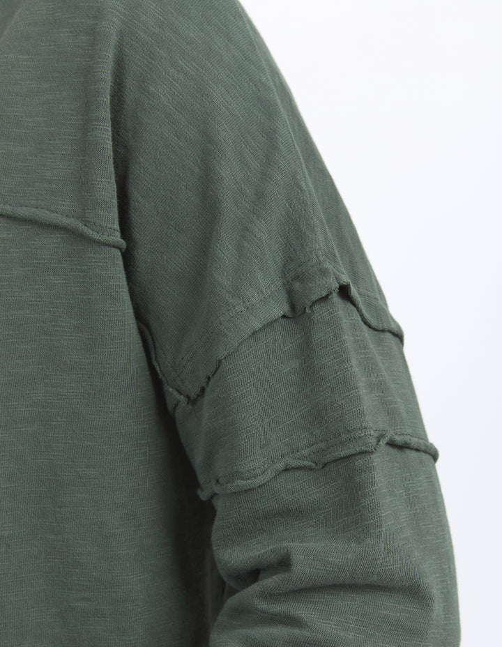 The Jayne Throw on Top is the perfect lightweight long sleeve to take you through the seasons. Cut from a comfy, cotton slub jersey this women's top features a crew neck, trendy exposed stitching and side split hi-low hem. Seriously versatile we know you'll be wearing this on repeat.