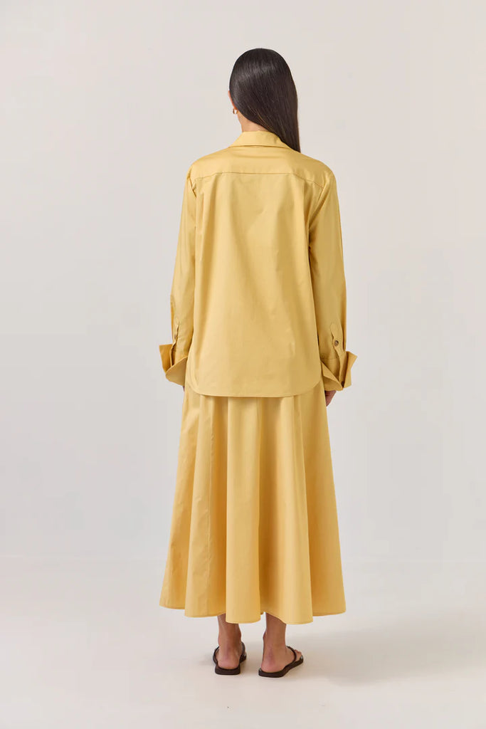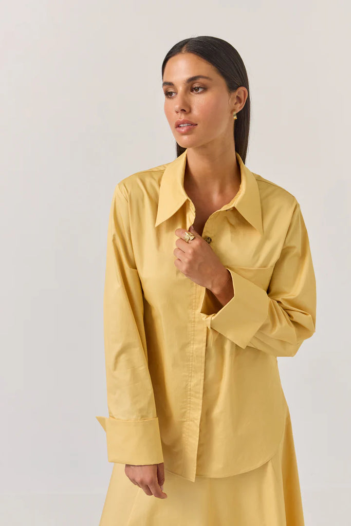 A new classic shirt option to add to our Mark Shirt & George Shirt offerings. In the same best-selling fit through the body, this new style has an updated cuff. Inspired by traditional cufflink finishing, the Reed Shirt features a double-width fold back cuff complete with additional button detail at the front wrist. Add to your workwear wardrobe, team with denim for a fresh sophisticated look, or embrace this important new season colour head to toe with the matching Circle Skirt or tonal butter suiting.