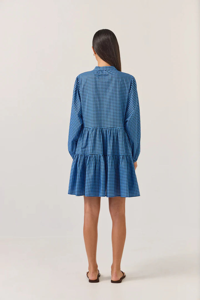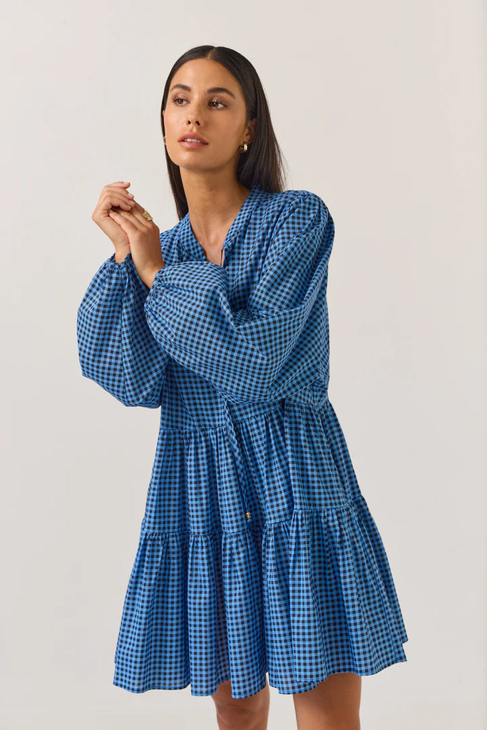 A brand new and super cute mini dress with a relaxed boxy body shape and fun billowy long sleeves. A great throw-on-and-go style for weekends and holidays in warm weather. Wear with sneakers or slides for a carefree casual look, or add boots for festival vibes.