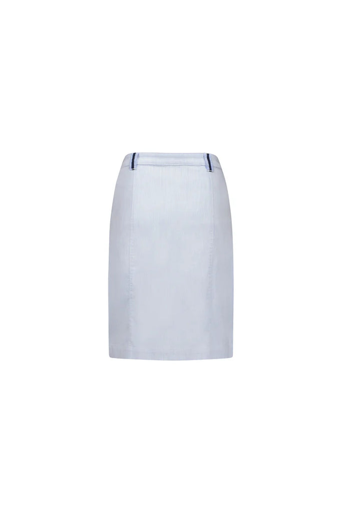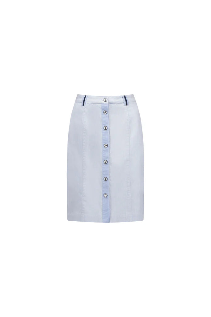 • Vassalli Knee Length Skirt with Contrast Buttons and Trim in Sky Blue