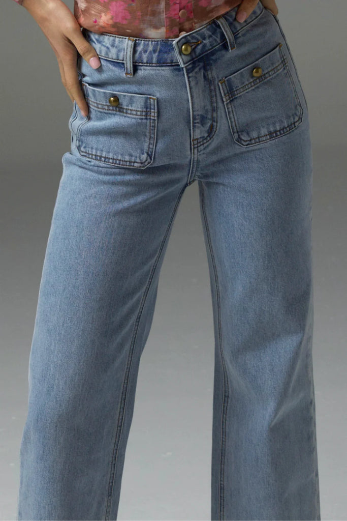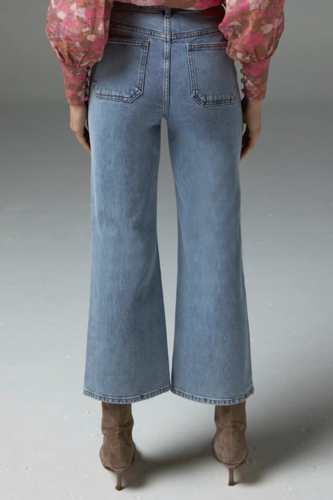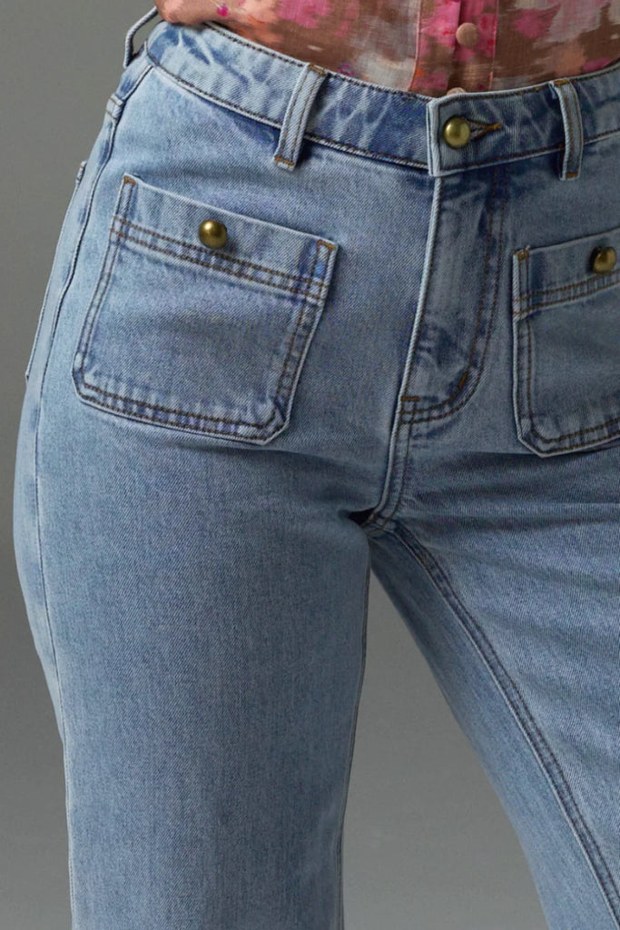 Channeling a retro charm, the Surrender Jean offers a cropped wide-leg profile that’s high-waisted and effortlessly chic. Curved front pockets finished with brass domed buttons add personality and flair, while a touch of elastane ensures a comfortable fit without compromising its structured silhouette. see product details below.