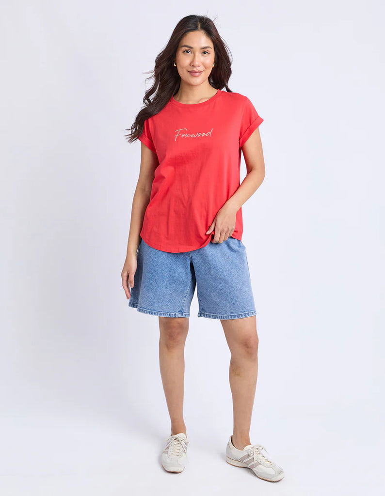 A spin on our Signature Tee! For classic Foxwood style the contrasting artwork is embroidered and the tshirt features a rolled cuff sleeve and curved hemline.
