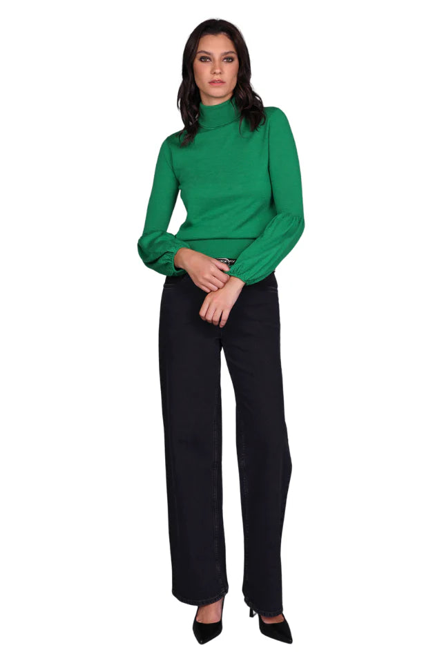 Roll Neck Merino Sweater - Grass Green