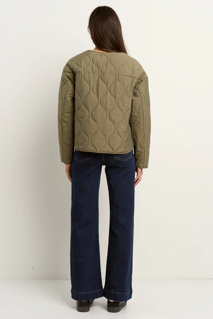 The Apex puffer from Stories be told is the ultimate everyday chic jacket. Featuring a collarless neck and quilted detail this jacket will keep you looking warm and stylish.