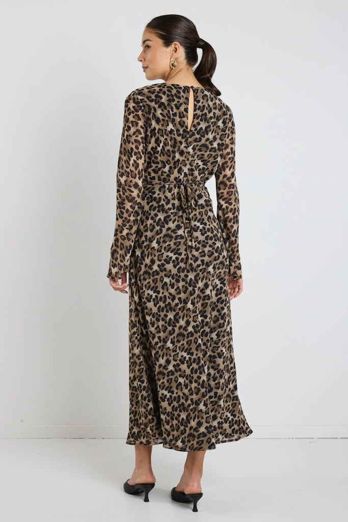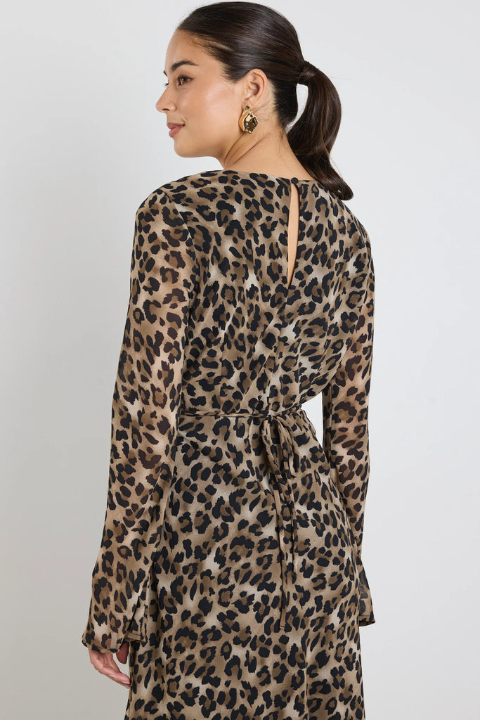 Bring the drama in the most wearable way with the Chateau leopard dress. This flattering bias cut midi drapes effortlessly, combining a fun leopard print with an ultra-feminine silhouette. Long sleeves and a chic v-neckline make it a luxe go-to for transeasonal dressing.