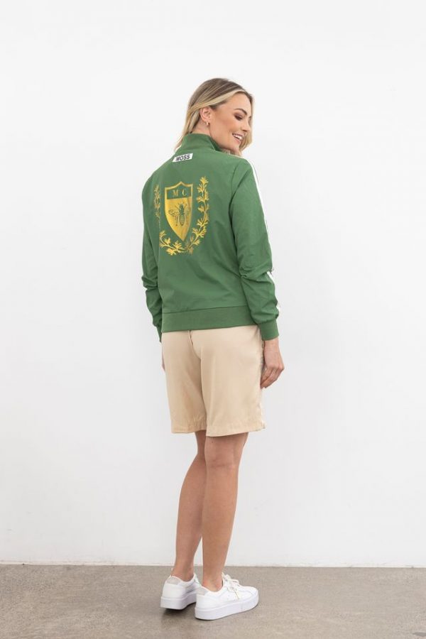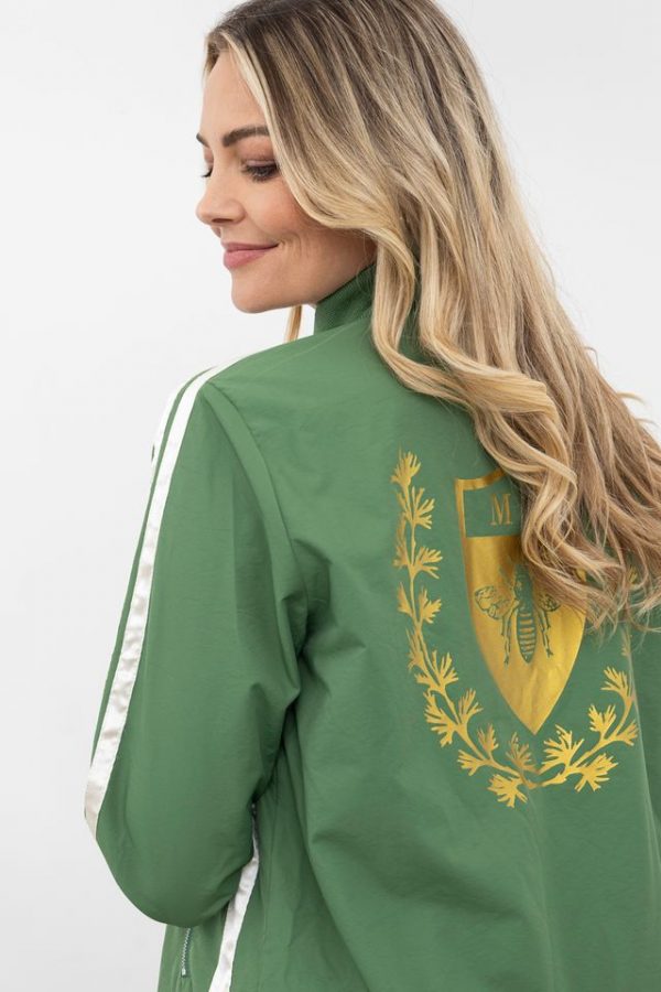 A sporty-chic jacket with a twist – featuring foiled gold moss crest detailing.