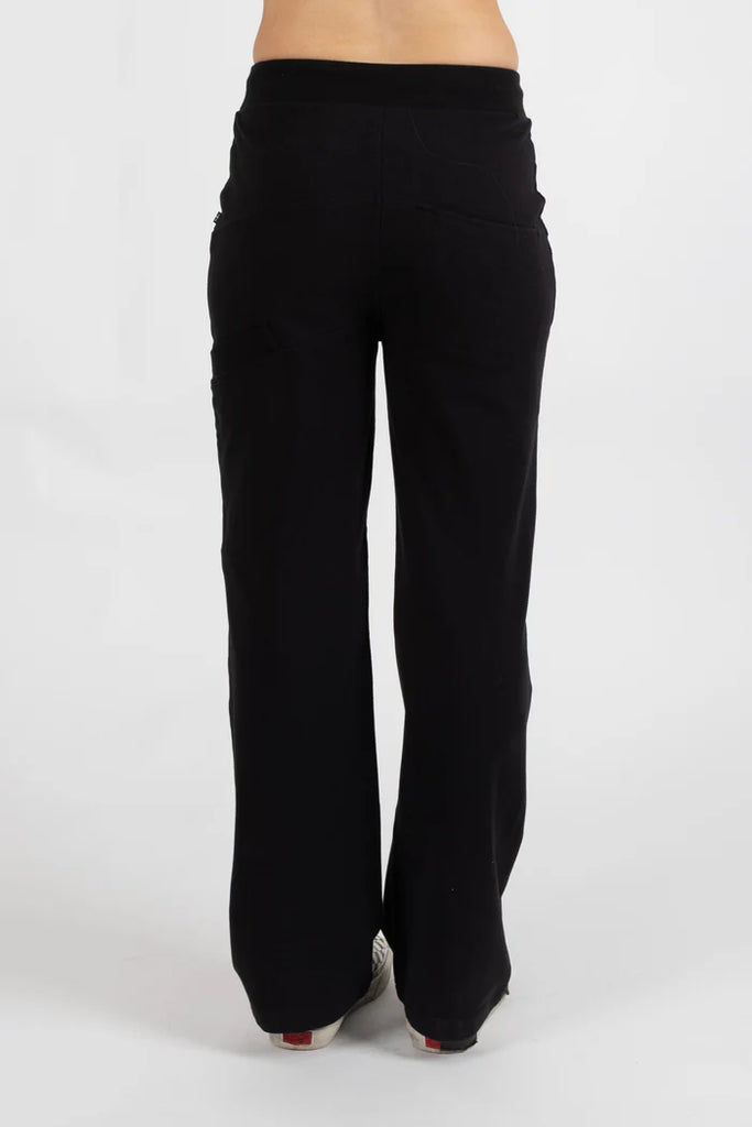 From the hips the leg drops off to create the loose / straight leg fit. Easy to dress up or down and be your most comfortable easy go to.