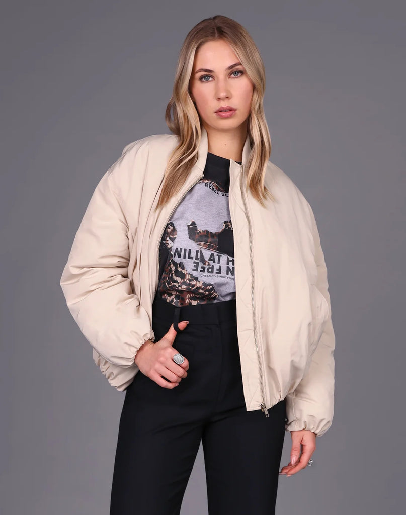 Our Gathered Bomber Jacket is designed to be seen, with an effortless, cool-girl feel that layers perfectly for the perfect finishing touch to any outfit this season.