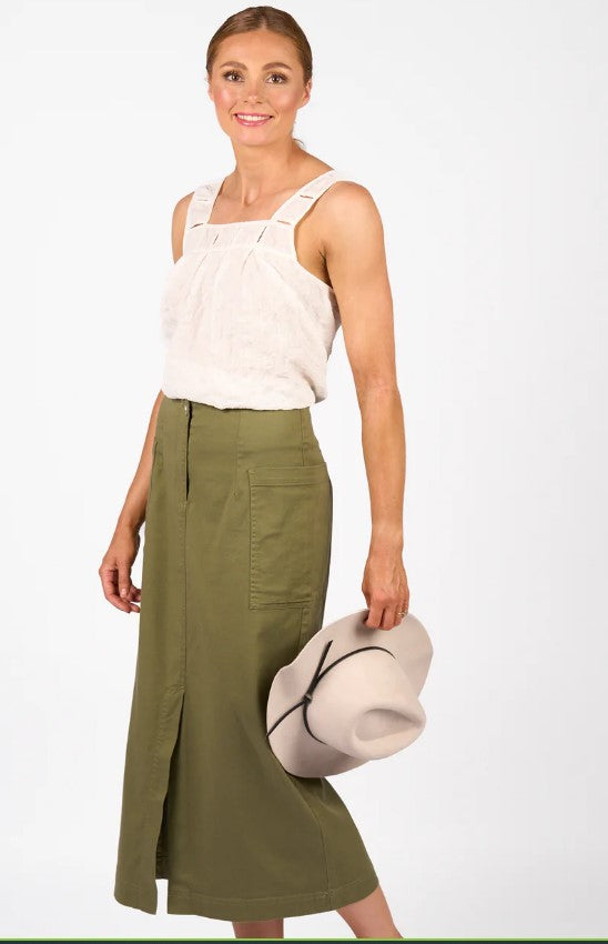 The Bay Skirt is a lightweight denim midi skirt designed for comfort and style on warmer days. Featuring a flattering centre front seam and a split for ease of movement, it blends effortless style with practicality. Side patch pockets make it perfect for everyday wear, while the classic denim look ensures it’s a wardrobe staple you’ll wear on repeat.