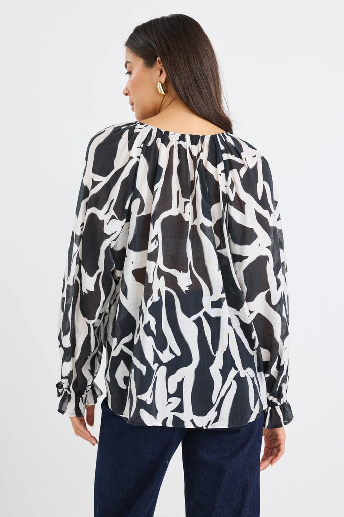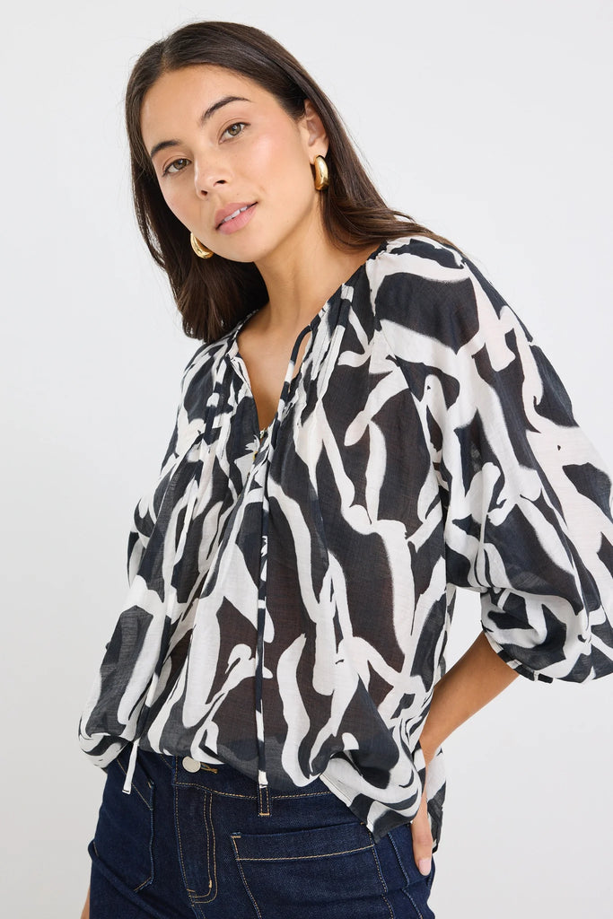 Create a chic elevated look with the Refine button front blouse. Made from a soft semi-sheer viscose blend, it drapes like a dream and has a soft breathable feel. Featuring buttons on the neckline to create a deeper v-neck if desired and front ties for extra detail.