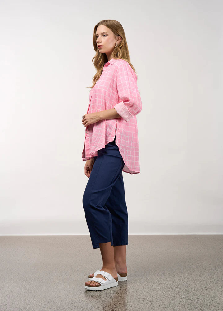The Wavelength Shirt from Madly Sweetly is an easy fitting button-up shirt in a soft printed ramie. Featuring side placket button detailing for styling options and a flattering shirt-tail hem that finishes slightly longer at the back.